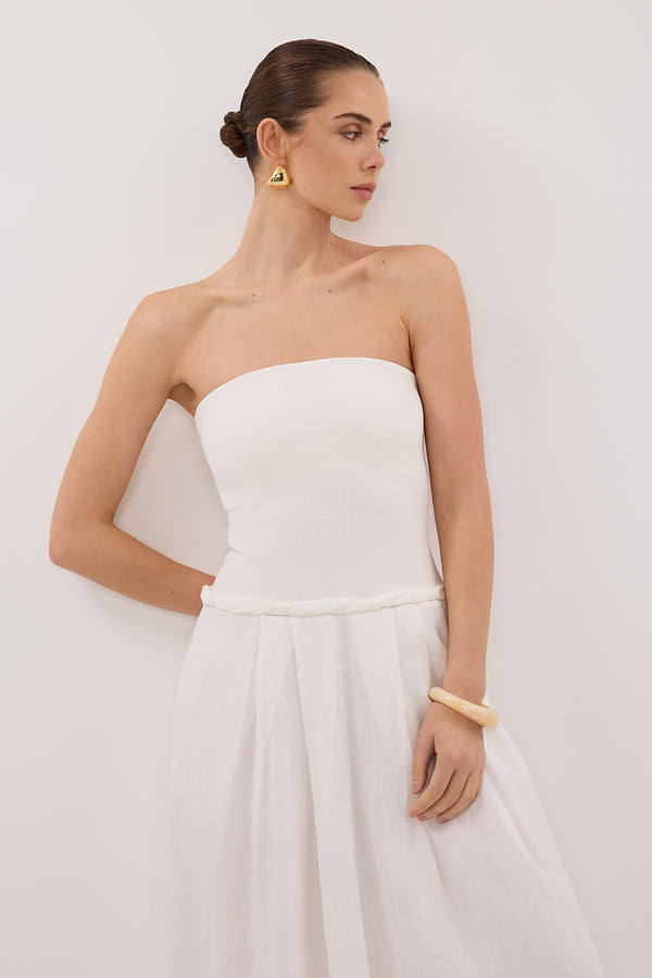 COCO WHITE STRAPLESS HYRBID MIDI DRESS