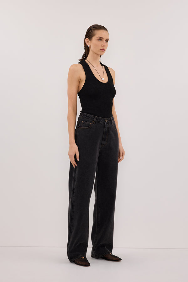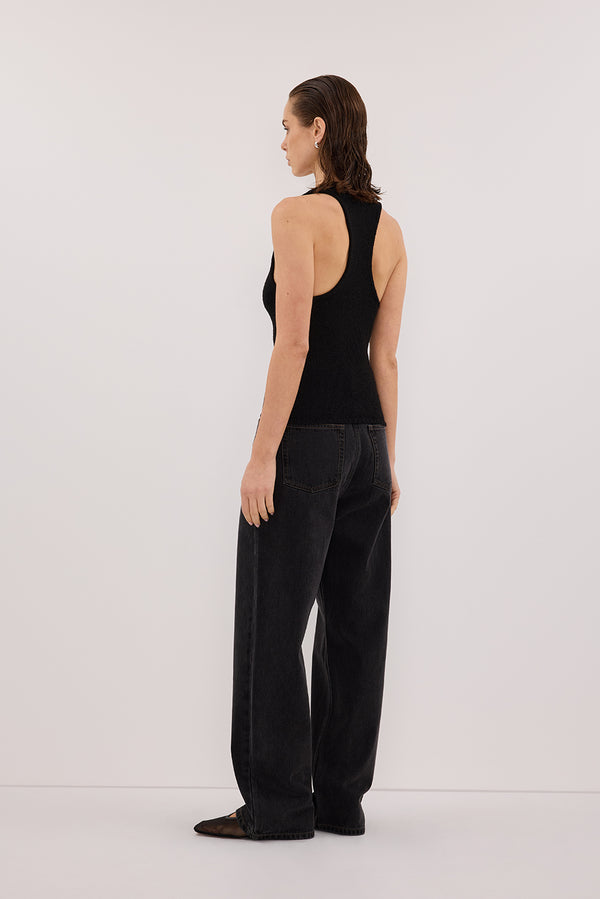 ASPEN BLACK SLEEVELESS RACER KNIT TOP