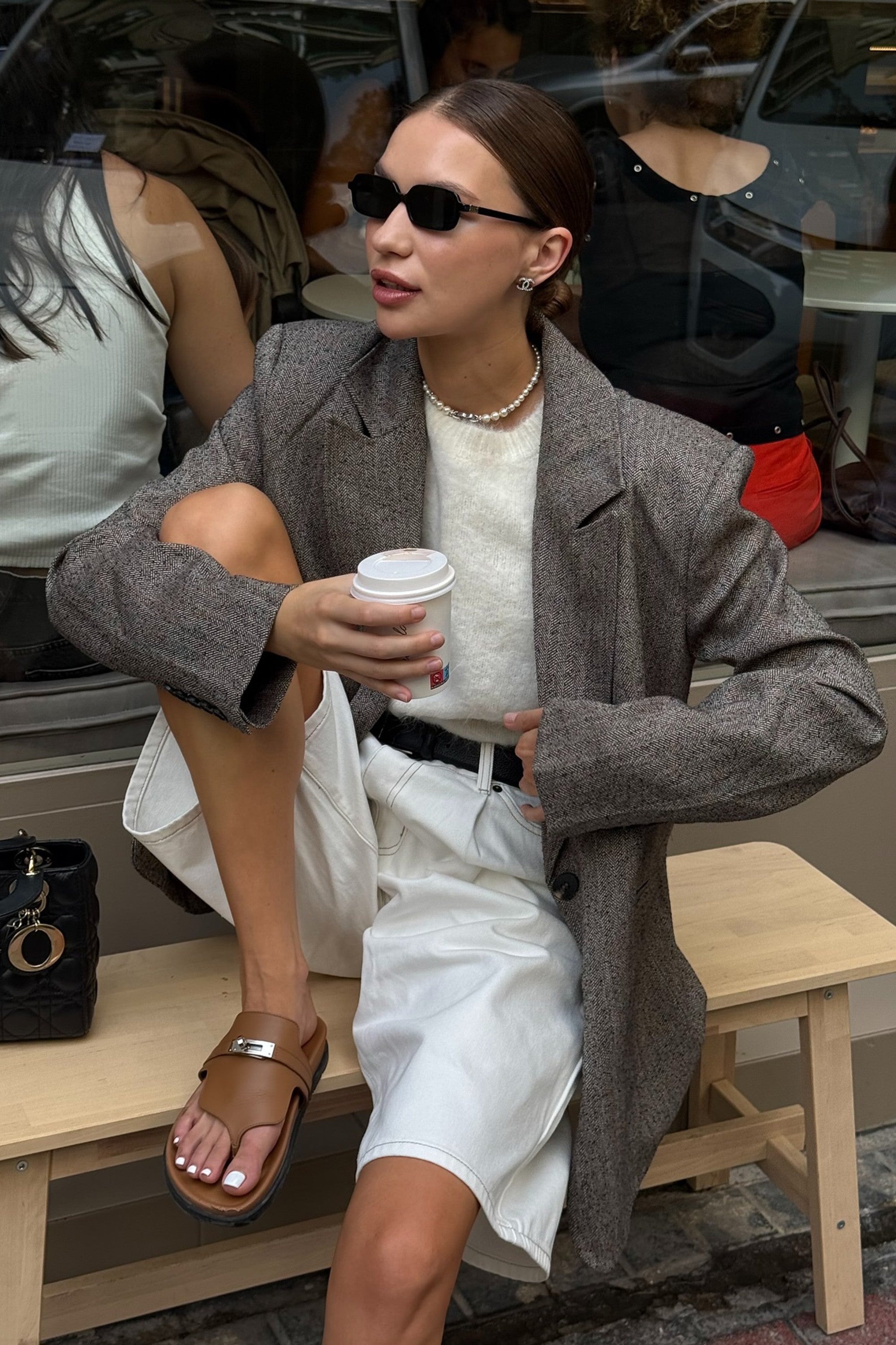 • Stas wearing FRANKIE CHOC OVERSIZED TWEED BOYFRIEND BLAZER