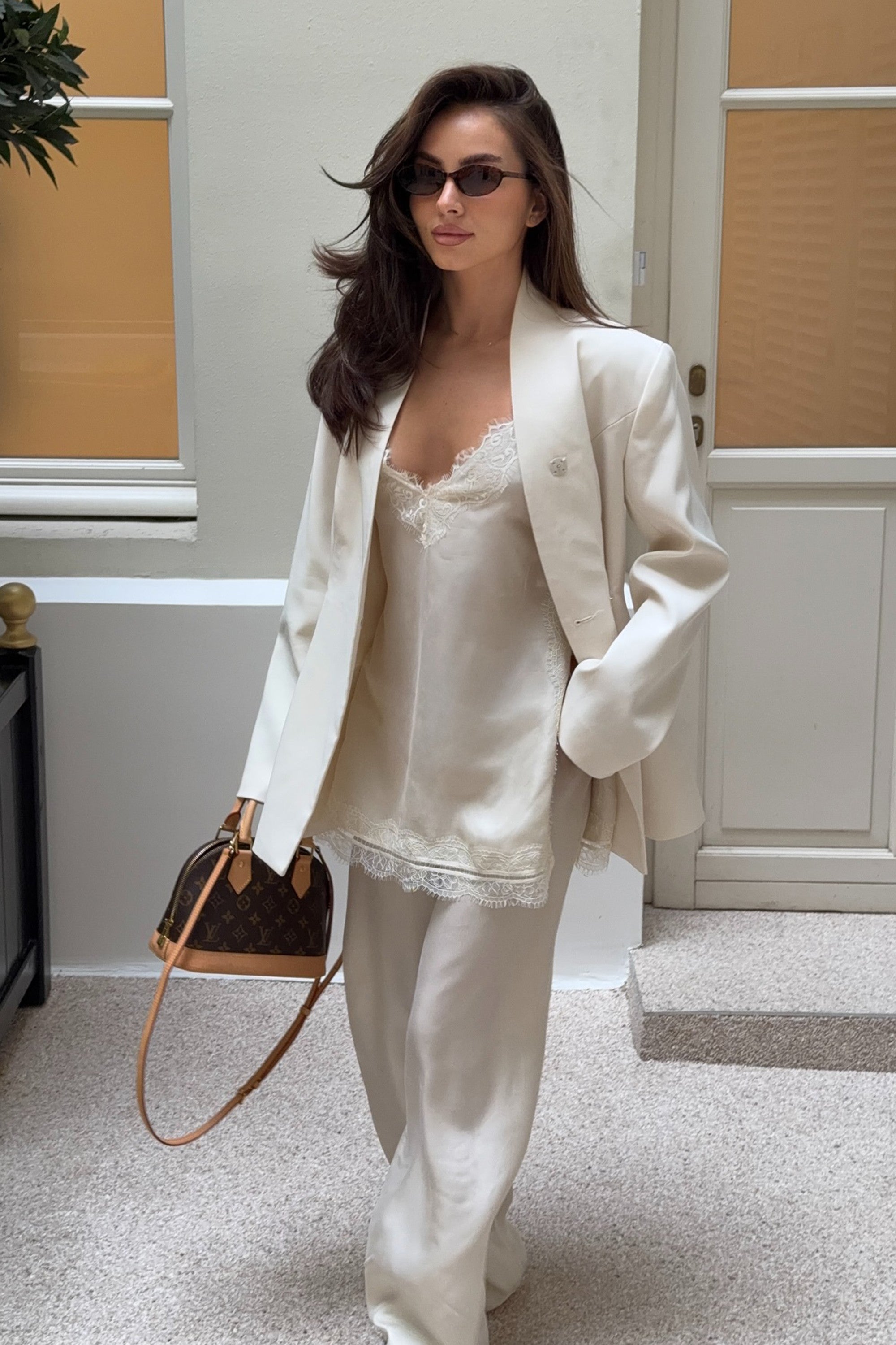• Stas wearing ANDREA SANDSTONE SLEEVELESS LACE CAMI TOP