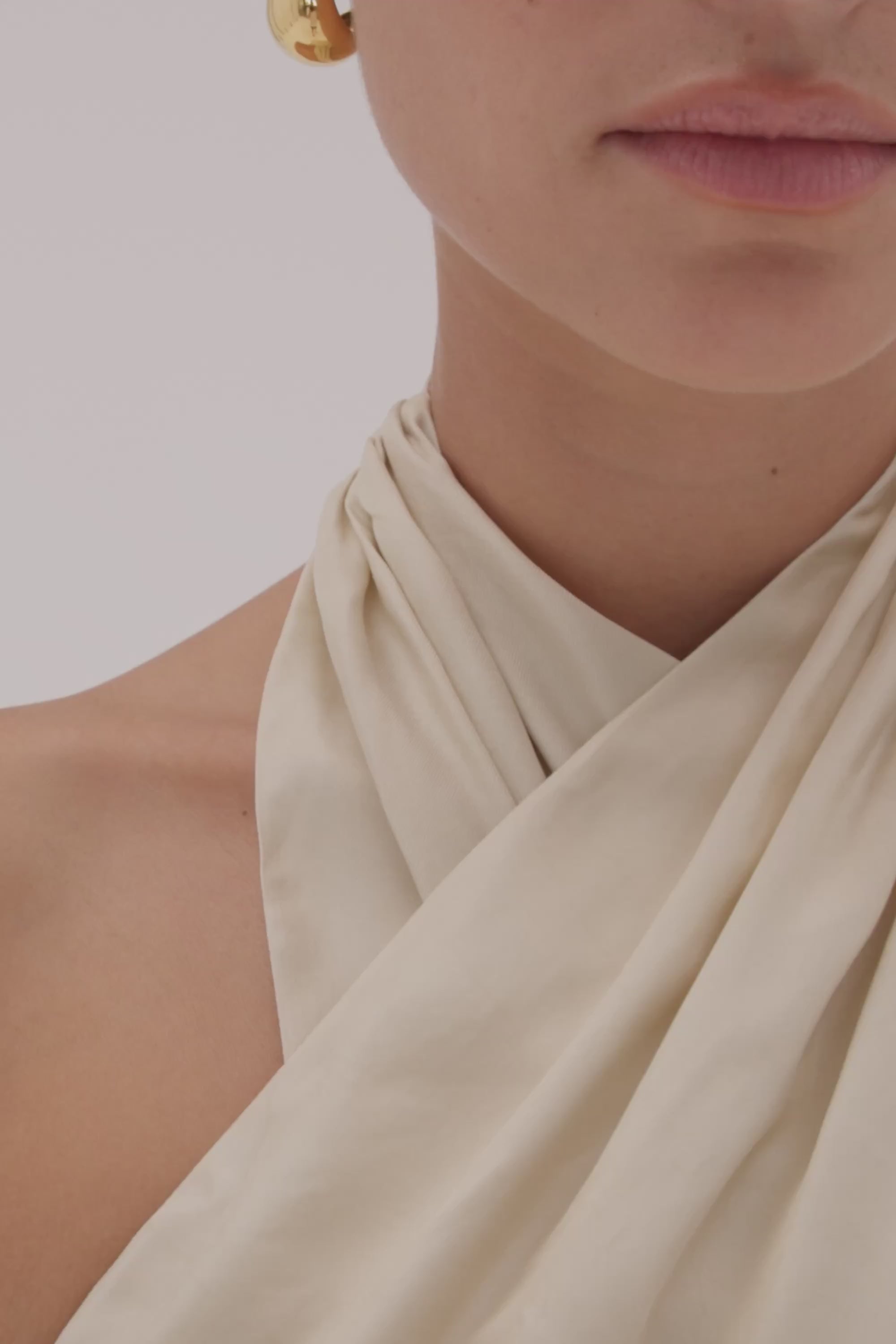 It’s the kind of top that changes the plan. Addie is cut in a halter, low back silhouette in a soft, fluid cupro. Suddenly you’re going out.