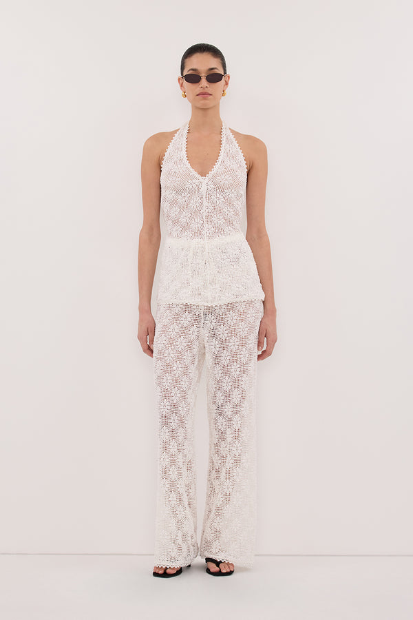 AGNES WHITE SLEEVELESS CROCHET HALTER TOP