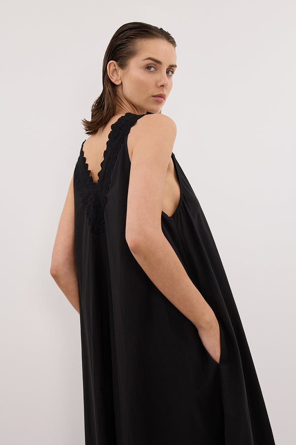 ANNABEL BLACK SLEEVELESS V NECK MIDI DRESS