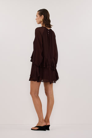 BODHI DARK CHOC LONG SLEEVE MINI DRESS