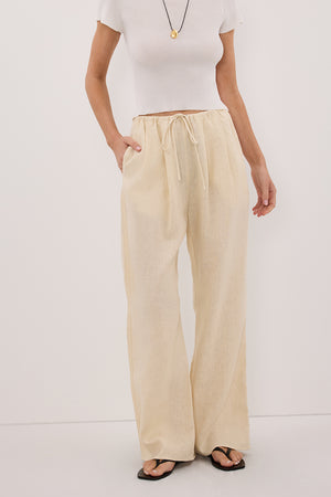 CARLA BUTTERMILK DRAWSTRING LINEN PANT