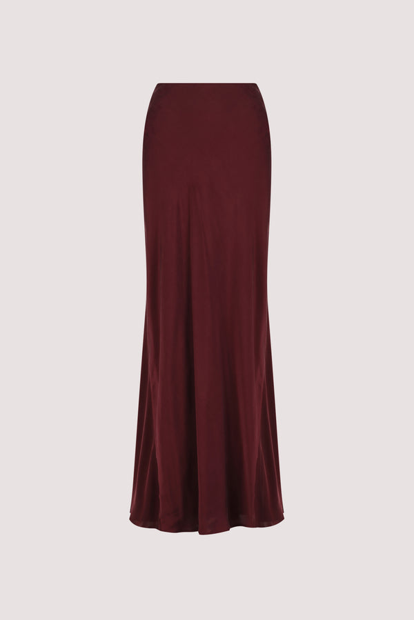 COLETTE MERLOT SILK MIDI SKIRT