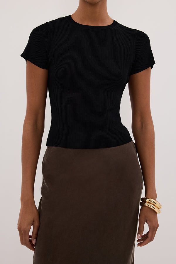 - Mid rise choc cupro midi skirt