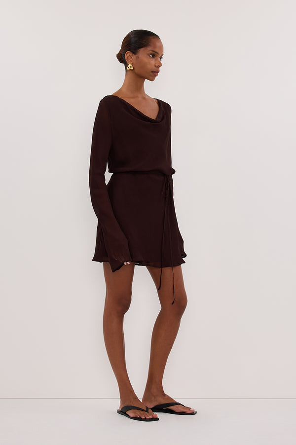 CORFU DARK CHOC SLEEVED MINI DRESS