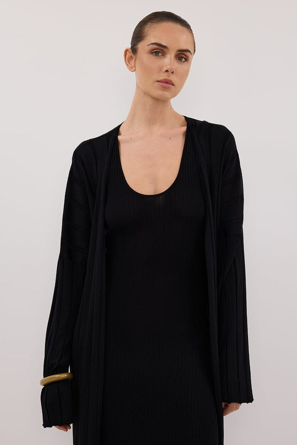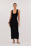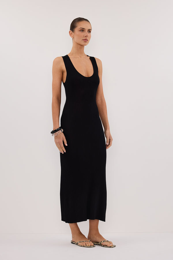 EVE BLACK SCOOP KNIT MIDI DRESS