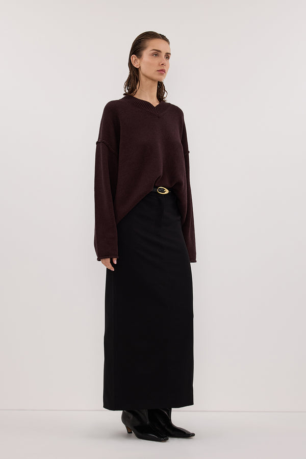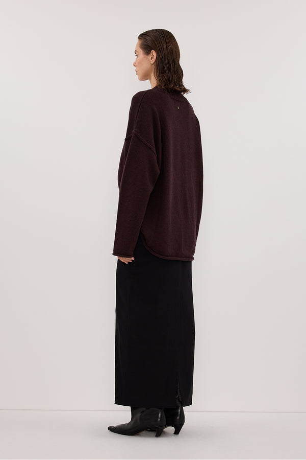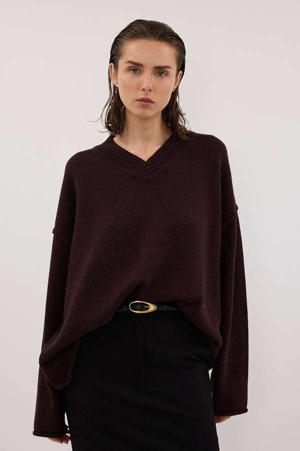 FLINT PLUM V NECK KNIT JUMPER