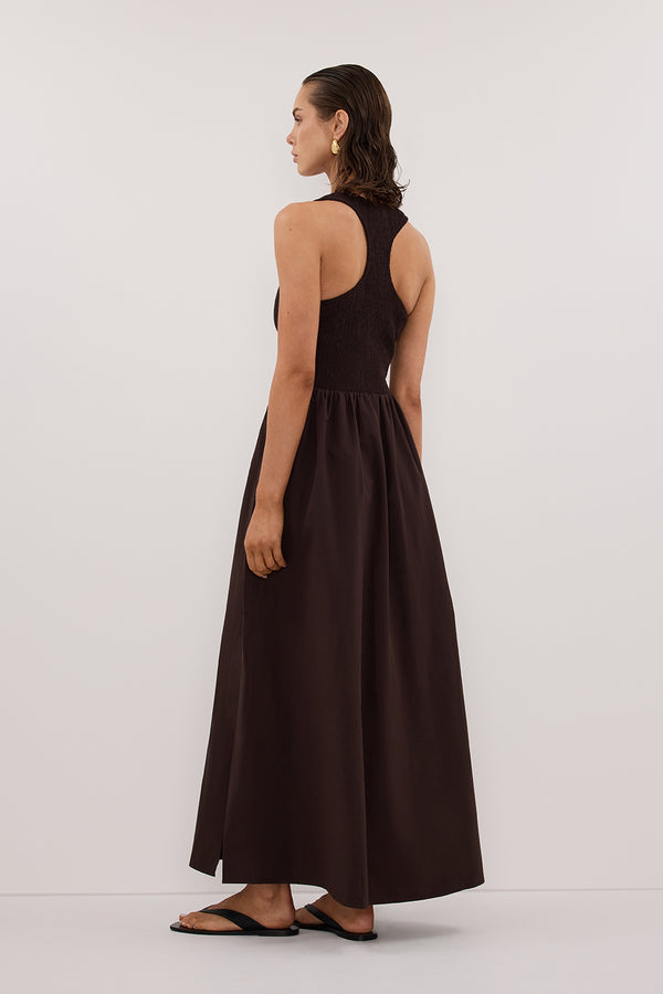 FLORENCE BURNT CHOC COTTON MIDI DRESS