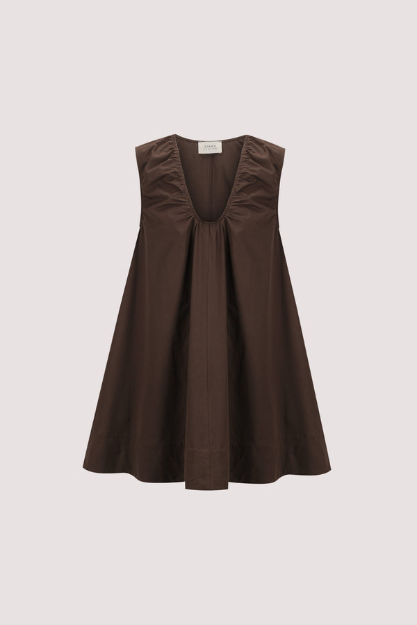 GABBY BITTER CHOC OVERSIZED COTTON MINI DRESS