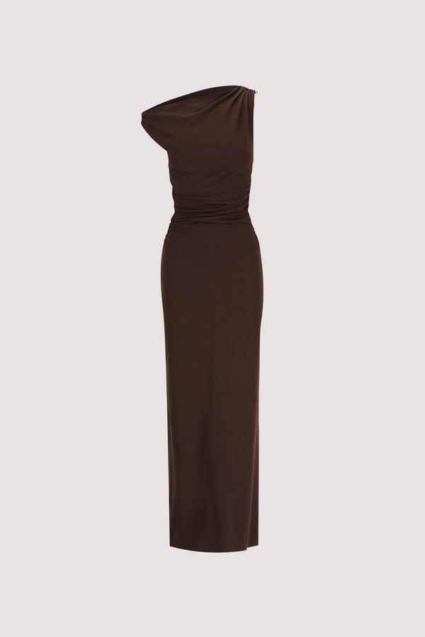 INEZ CHOC ASYM KNIT MIDI DRESS