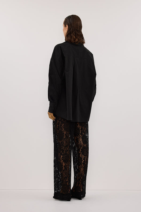 - Oversized black long sleeve cotton shirt