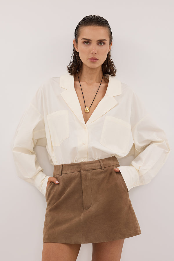 IRENE BUTTER LONG SLEEVE NOTCH COLLAR SHIRT