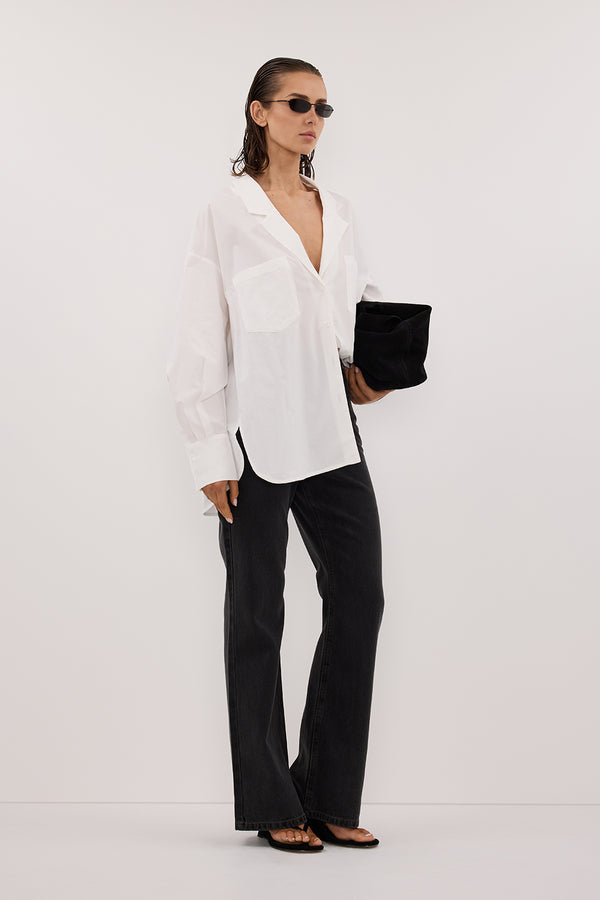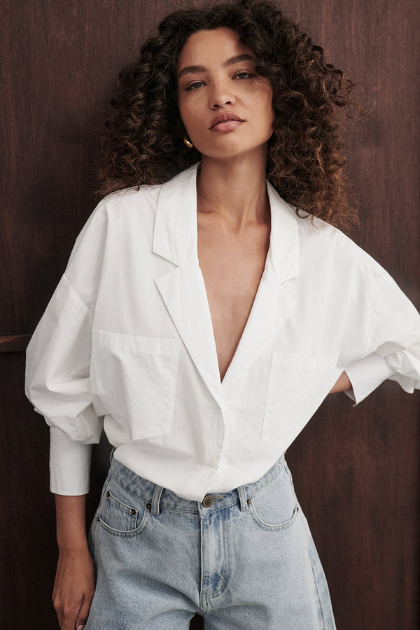 IRENE WHITE LONG SLEEVE NOTCH COLLAR SHIRT