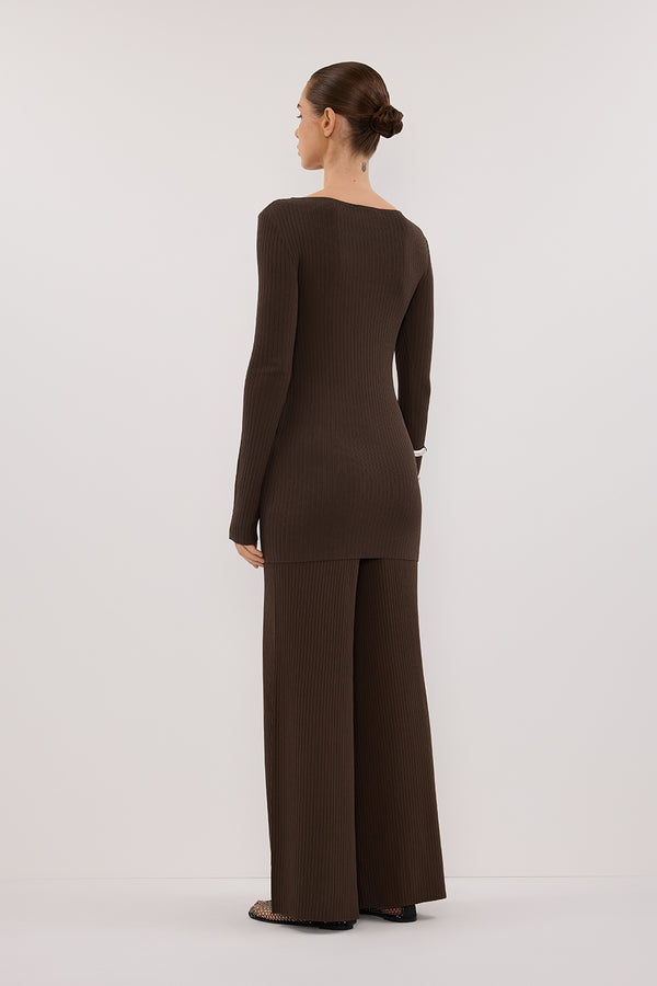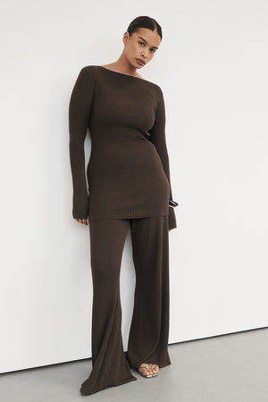 JOY DARK OLIVE LONGLINE KNIT TOP