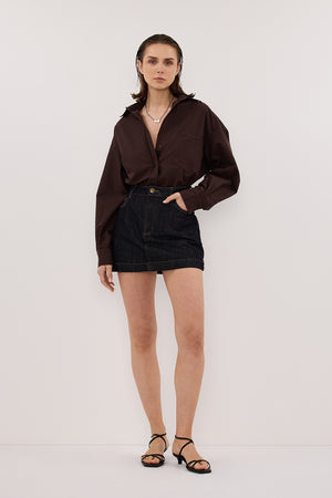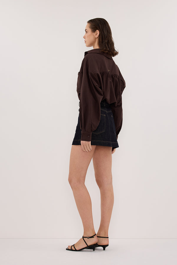 Colour transfer may occur onto light-coloured garments, upholstery or footwear, especially before washing. Wash before first wear. Wash only as needed. Cold gentle machine wash inside out with similar colours. Hang in shade to dry. Warm iron if required. Dry cleanable. Please refer to garment care label for detailed care instructions. -