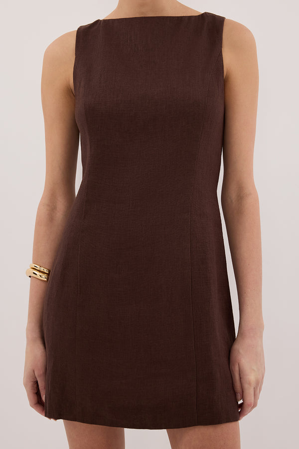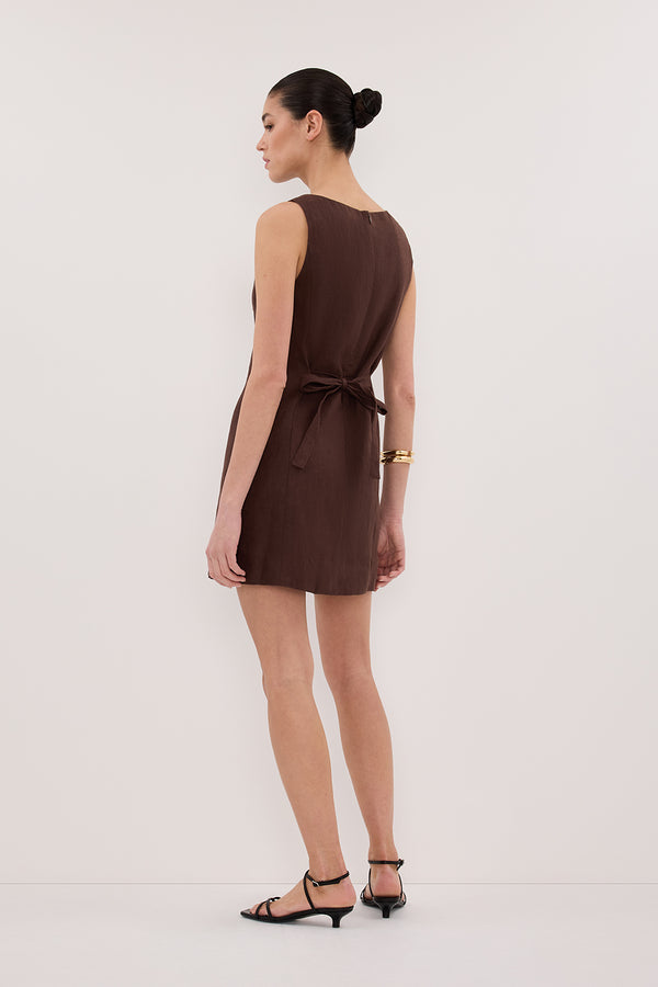 LACY COCOA SLEEVELESS LINEN MINI DRESS