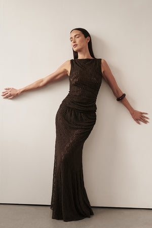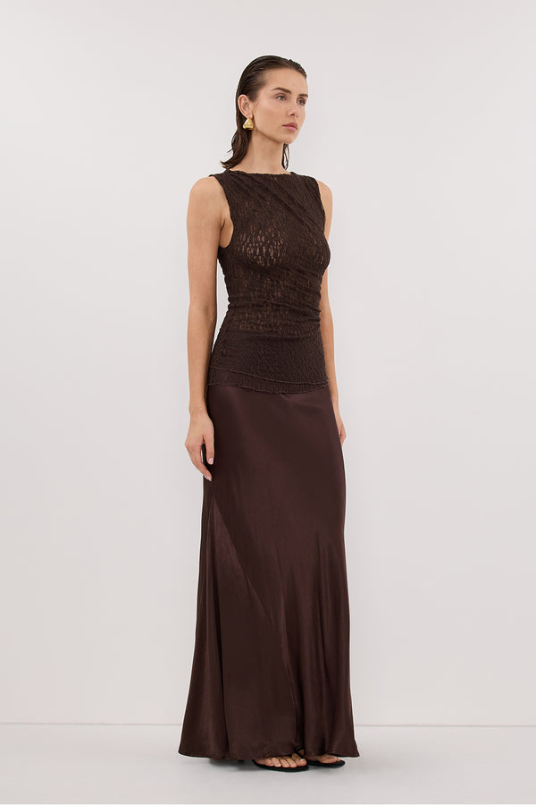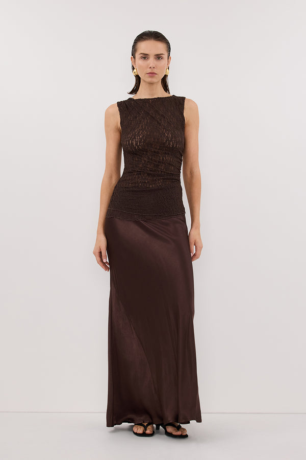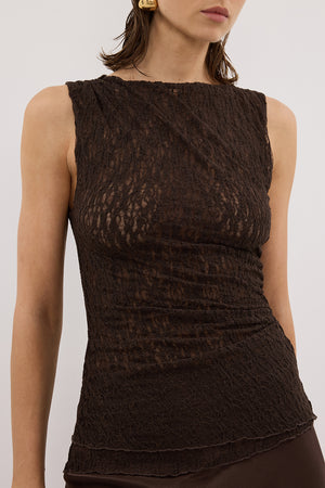 LIZZIE DARK CHOCOLATE SLEEVELESS LACE TOP