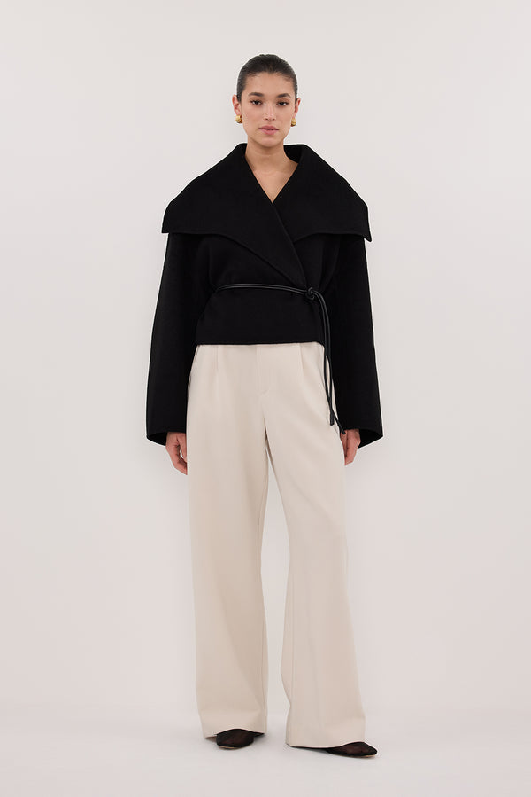 LUCIA BLACK CROPPED WOOL BLEND TRENCH COAT