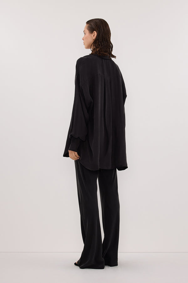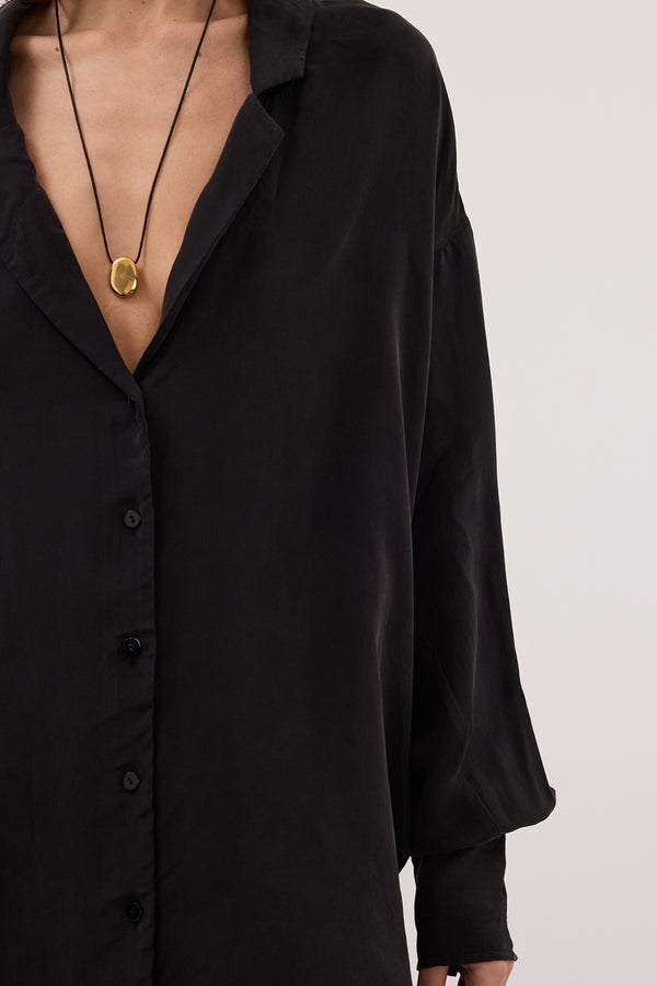 LUCILLE BLACK LONG SLEEVE CUPRO SHIRT