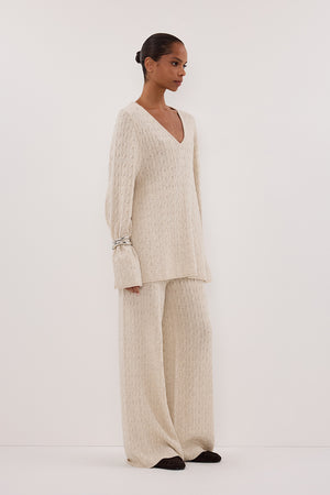 MAREN CHALK CABLE KNIT PANT