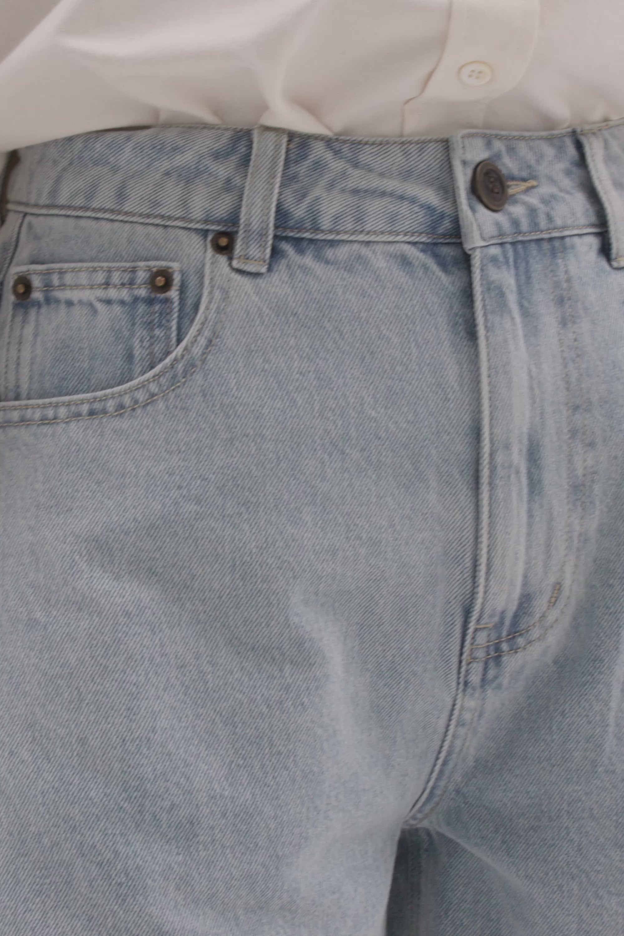 • High rise light blue denim short