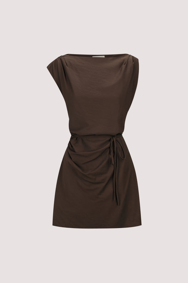 MARMO CHOCOLATE DRAPED MINI DRESS