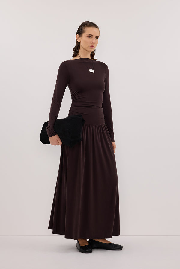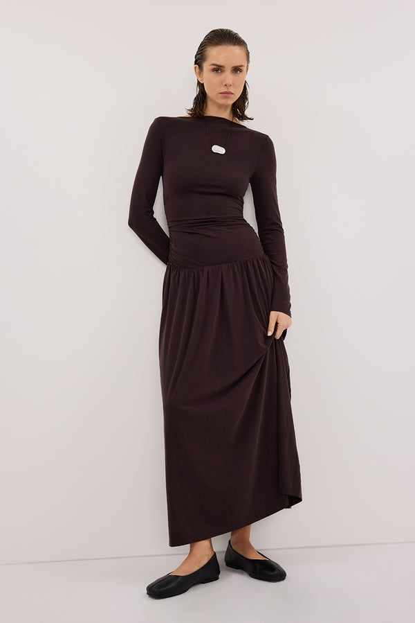 MEG BURNT CHOC LONG SLEEVE KNIT MIDI DRESS