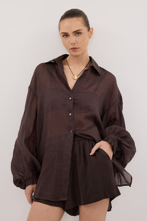 MILLER DARK CHOC RAMIE LONG SLEEVE SHIRT