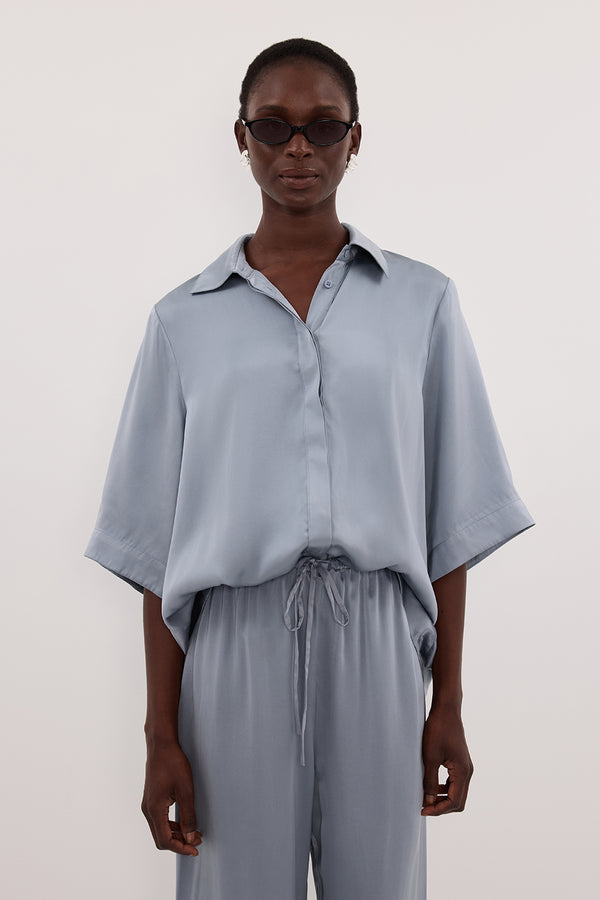 PERCY DUSTY BLUE SILK SHIRT
