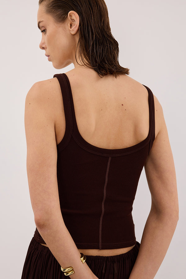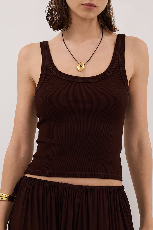 PHOEBE BURNT CHOC SCOOP NECK TANK TOP