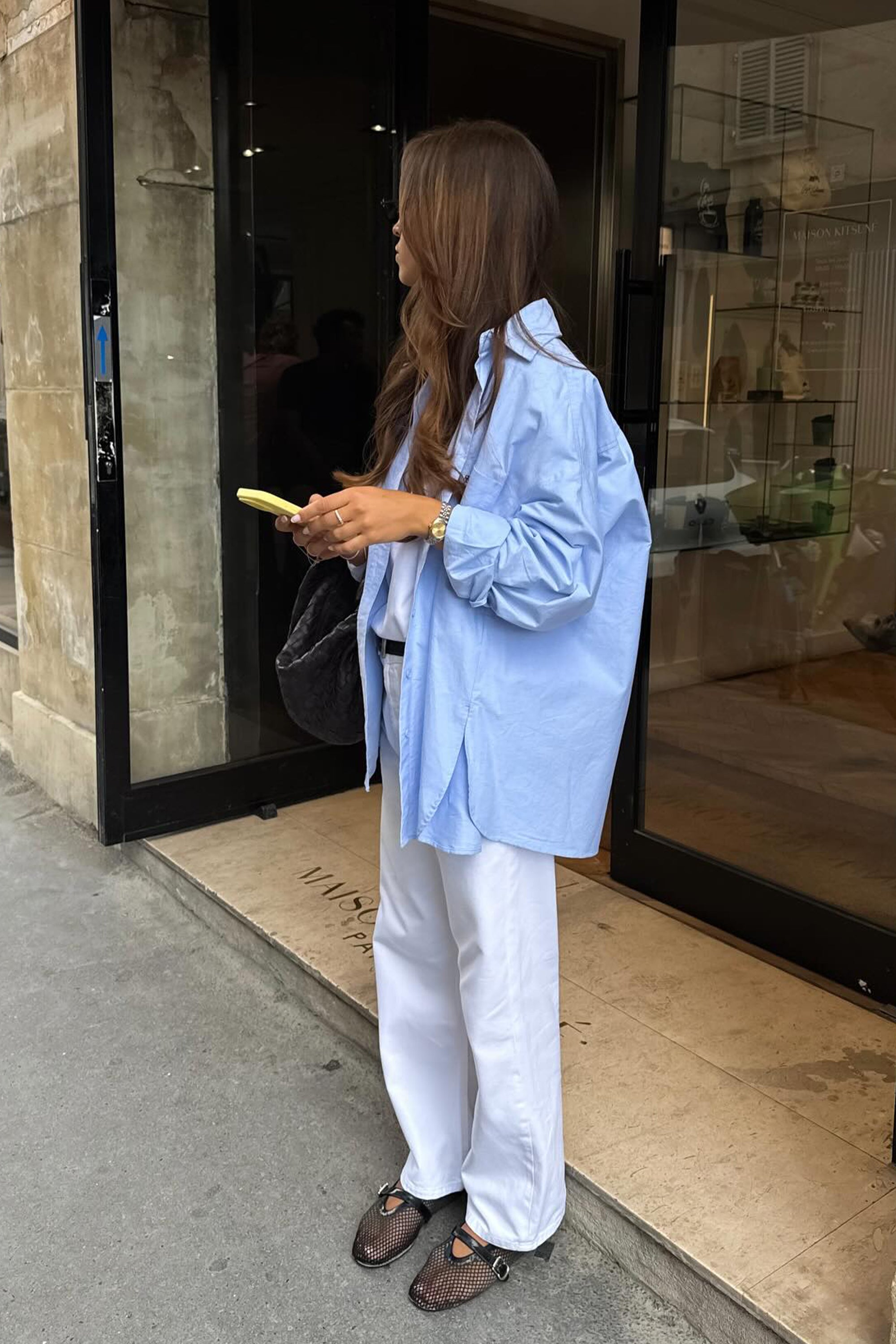 • Stas wearing RHEA BLUE OVERSIZED COTTON SHIRT