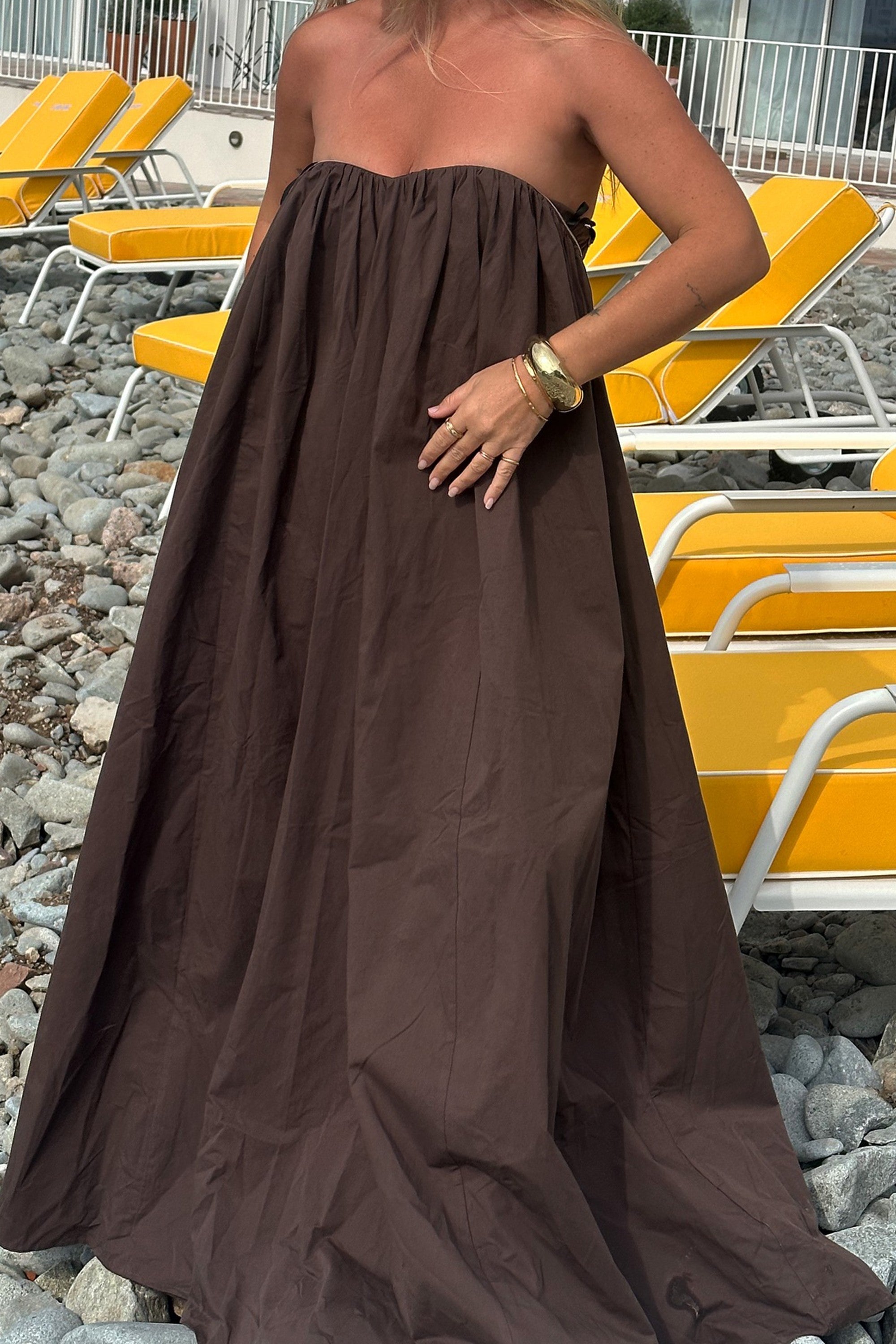 ROISIN BITTER CHOC COTTON STRAPLESS MAXI DRESS