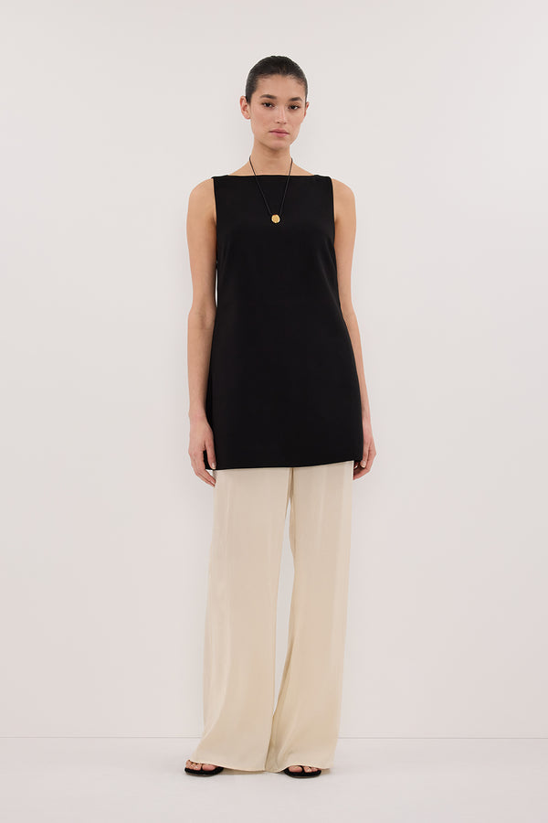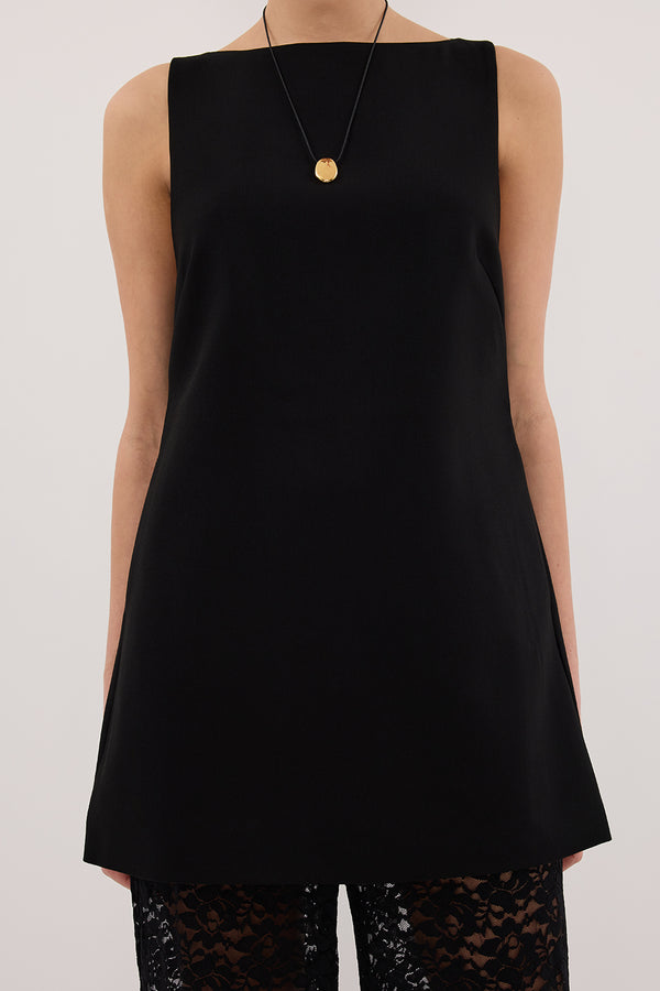 ROWIE BLACK SLEEVELESS BOAT NECK TUNIC TOP