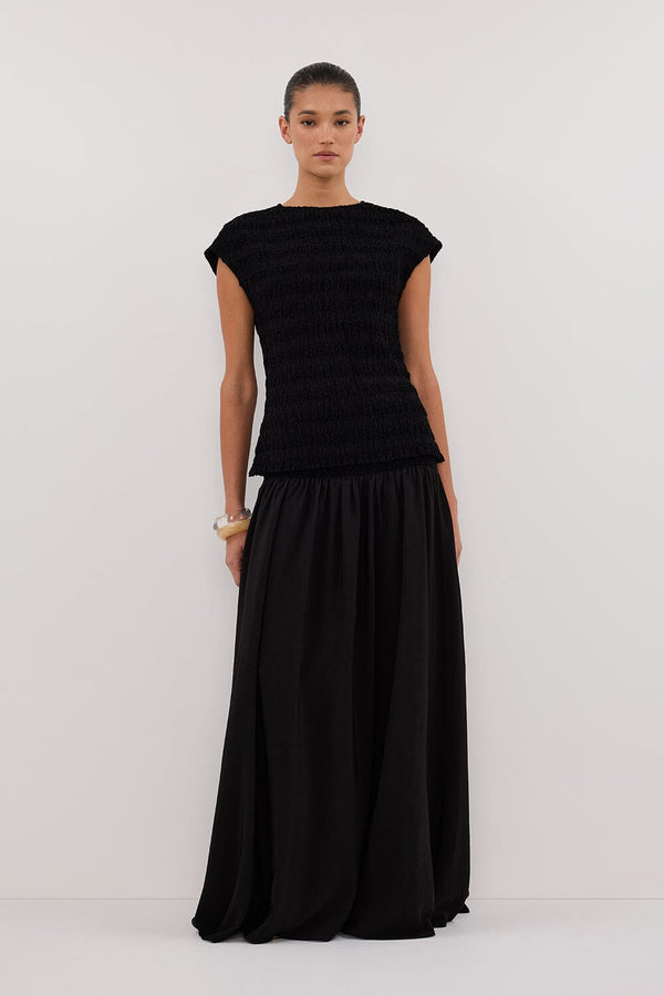 SIERRA BLACK TEXTURED MIDI SKIRT