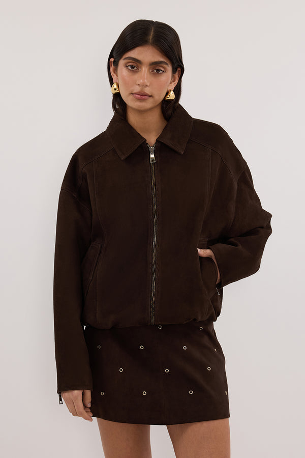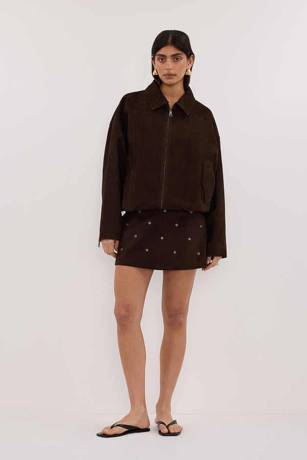 SYLVIE BITTER CHOC SUEDE MINI SKIRT