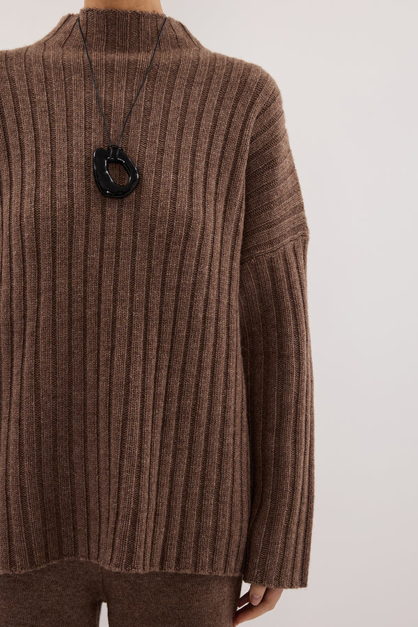 TUCSON MOCHA HIGH NECK KNIT JUMPER