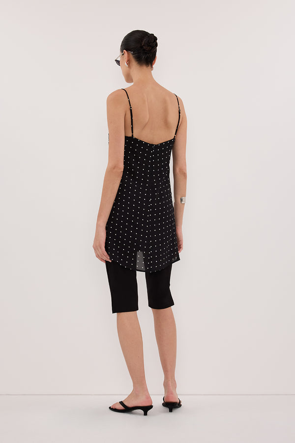 VANESSA BLACK SLEEVELESS SPOT CAMI TOP